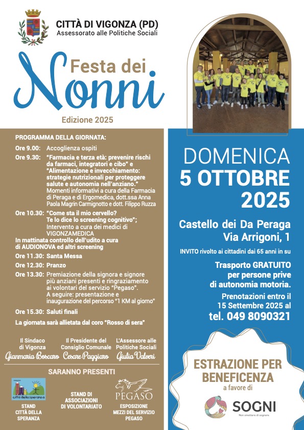 Festa dei nonni organizzata dal Comune di Vigonza. Ci sarà anche una estrazione di beneficienza a favore di Sogni.