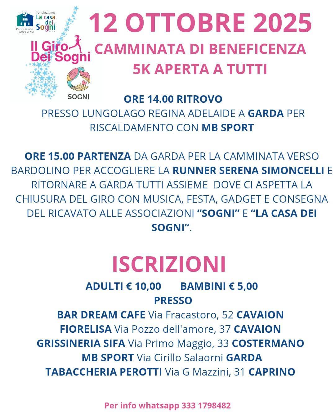 12Ott14:0021:00Il giro dei SogniGiro del lago di Garda di Corsa e camminata di 5km